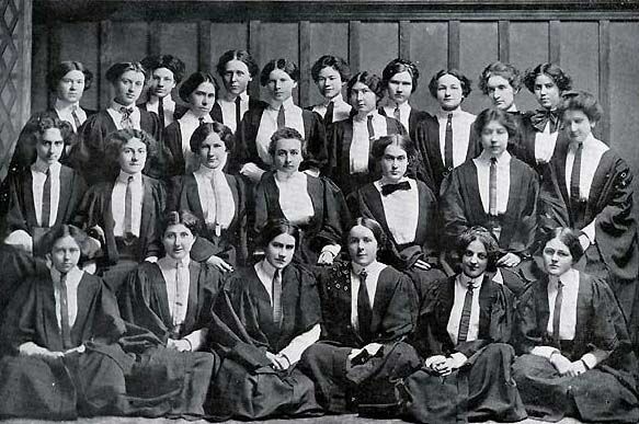 In the first graduating class, Marion Pettit earned a degree with honours in English and history. Mary Oliver graduated with a degree in classics, achieving high honours and earning the Copland Scholarship. Oliver was the top graduate in the class that year. Oliver was also president – and likely a founding member – of the Penta Kai Deka Society, a female student society established in 1911 that continued its social activities and advocacy for female students until the late 1960s.