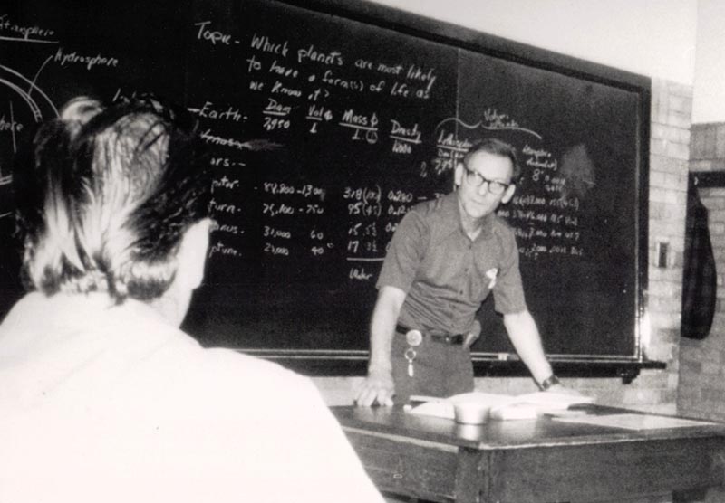During his 20-year career at USask, Patterson’s passion for astronomy became a focal point of his work on and off campus, guiding students in using the telescope at the university’s observatory as well as teaching amateur astronomy classes in the basement of his home in Saskatoon, where he had created a dark room for astronomical photography and also built an observatory in the backyard. Patterson also constructed an observatory outside the city with the help of family and members of the local astronomical society.