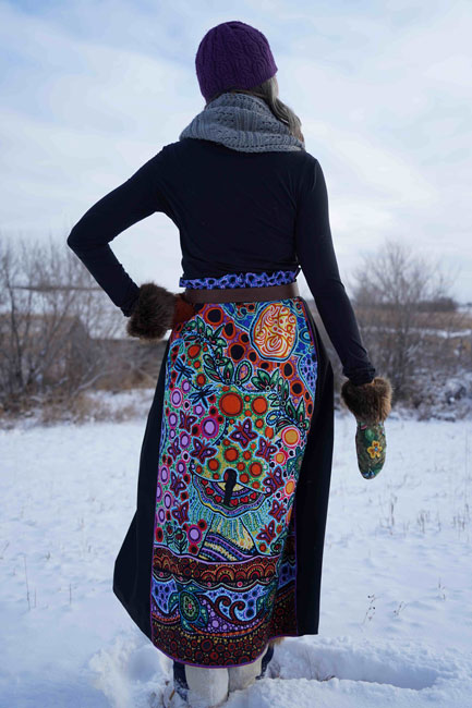Leah Marie Dorion designs and sews Métis-style ribbon skirts. (Photo: Louis Lafferty Photography)