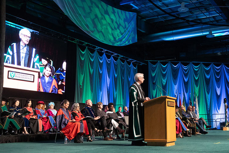 Having been named a Companion of the Order of Canada in 2021 – one of the country’s highest civilian awards – for his “contributions to literature and his philanthropic commitment to the betterment of his region” and earned the Queen Elizabeth II Platinum Jubilee Medal in Saskatchewan in 2022, Martel encouraged those from USask to work for the collective good of the planet and to use their education for problem solving.
