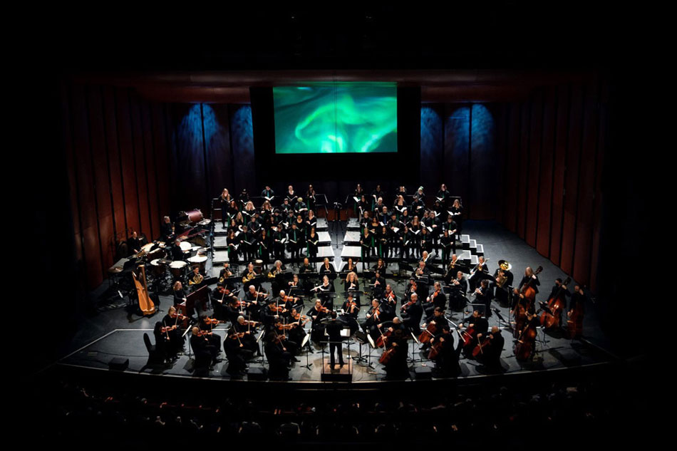 Those singers: the members of the USask Greystone Singers and its alumni choir, Aurora Voce.