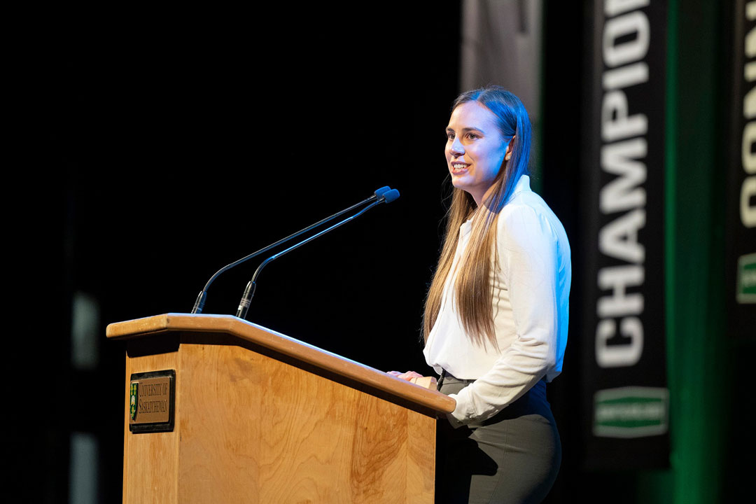 Award-winning Huskie student-athlete Libby Epoch earned a Bachelor of Science in Engineering degree and a Certificate in Professional Communication during Spring Convocation