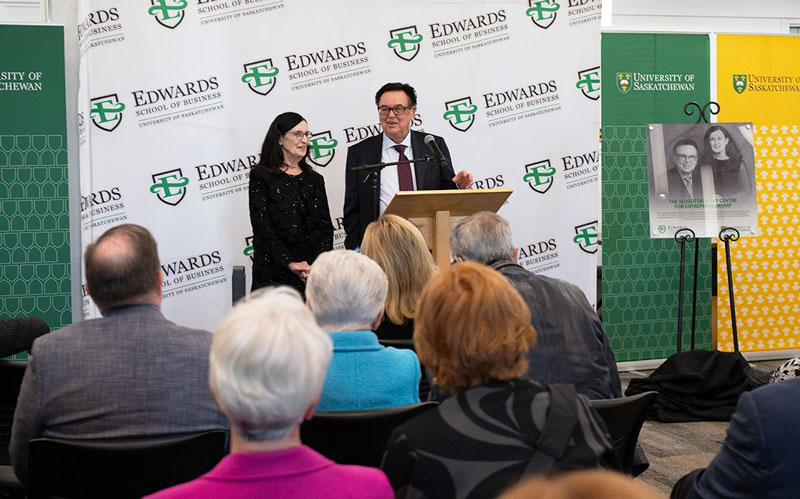 “Thanks to Bernie and Thedra’s generous and visionary gift, this new centre will play a transformational role in connecting and uniting entrepreneurial initiatives across USask and within the Saskatchewan entrepreneurial community,” said Peter Stoicheff, USask president and vice-chancellor. “The Slogotski Hunt Centre for Entrepreneurship will serve as a catalyst for economic growth with the potential to significantly contribute to the overall prosperity of our local economy.”