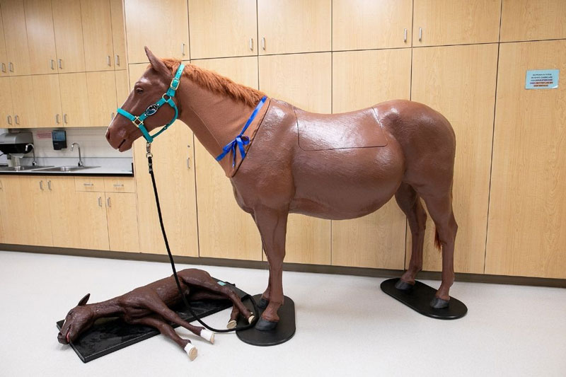 The mare and foal now reside in the BJ Hughes Centre as welcome additions to the college’s already extensive collection of hands-on training models. Veterinary students — along with clinical interns and residents — take part in over 700 clinical skills labs that are held at the simulation centre each year.