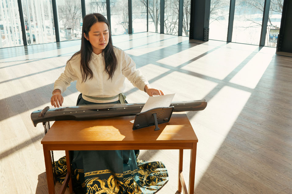 Studying photography sparked Han’s experimentation with self-portraiture. Her artistic practice has since expanded to include dance, storytelling, and music; she plays a plucked seven-string Chinese instrument called the guqin, which she enjoys for its meditative and atmospheric sounds. As her artwork continues to evolve, she is exploring how to best shape her performance-based practice through the RBC Sustained Artist Mentorship program at Remai Modern. Han is currently one of three artists involved in the program, which fosters a supportive environment for exploration and provides emerging and mid-career artists with access to facilities, curators, and community resources.