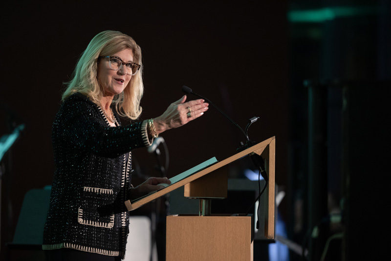 On behalf of the president’s executive team, Hamelin spoke to the crowd about Stoicheff’s legacy, describing him as an individual who leads with empathy, humility, and “the unwavering belief that education can and must be a force for good.” In her tribute, Hamelin said Stoicheff “sets a standard of excellence we all aspire to achieve,” noting that when he took on the role of president a decade ago, he brought with him a bold, ambitious vision that was “laser-focused” on the success of students, faculty, staff, alumni, and others.