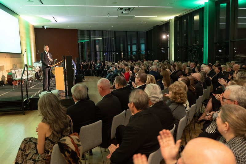 The evening was an opportunity to celebrate Stoicheff’s impact at USask and far beyond and to express gratitude for his unwavering dedication and commitment to the university and its people. Stoicheff’s 39-year career at USask began as a professor of English in 1986. He then went on to serve as dean of the College of Arts and Science before becoming USask’s president in 2015. His 10-year tenure as president was marked by many significant achievements, such as leading the university during the historic Be What the World Needs fundraising campaign, the development of the Prince Albert Campus, a remarkable rise in research funding and international rankings, and the gifting of ohpahotân | oohpaahotaan—the Indigenous Strategy for USask—in 2021.