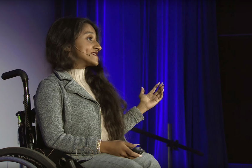 As a student, and now as an alumna, Jaisee has advocated for greater accessibility by sharing her own lived experiences. In 2019, she gave a TEDxUniversityofSaskatchewan talk titled “Overcoming Adversities of an Incurable Disorder,” during which she spoke to a crowd on campus about living with osteogenesis imperfecta. As a result of the condition, which is often called “brittle bone disease,” Jaisee has experienced more than 100 fractures. She has also endured numerous surgeries and lives with chronic pain. Even a slight amount of pressure on her body can result in a fracture.