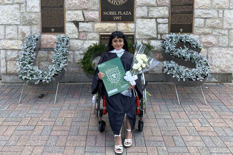 Much of Jaisee’s advocacy has been rooted in her own lived experiences as a Bangladeshi immigrant woman of colour and a wheelchair user with disabilities. While a student in USask’s College of Arts and Science, she became even more passionate about equity, diversity, and inclusion while taking on student government roles and while working toward a double honours degree in political studies and women’s and gender studies and a certificate in queer theory, gender diversity, and sexualities studies.