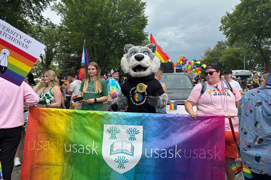 The University of Saskatchewan is proud to celebrate and support the 2SLGBTQQIA+ community during Pride month and every month. USask’s mission is to be what the world needs, and the world needs safe and welcoming spaces for everyone. You can attend an event, walk with the USask community in the Saskatoon Pride Parade on June 22, access learning resources, read stories about the USask community, and find more year-round at spotlight.usask.ca.
