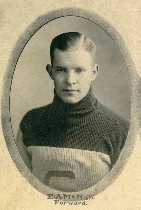 Born in in Rosthern, Sask., McNab attended Nutana Collegiate in Saskatoon before enrolling at USask and earning his engineering degree in 1931, while on leave after enlisting in the RCAF in 1926. McNab played five years with the Huskie football and hockey teams, and was a member of the Huskies squad that advanced to the Allan Cup Canadian Senior Hockey Championship in Winnipeg. He was posthumously inducted into the Huskie Athletics Hall of Fame in 1987, 10 years after he passed away in Vancouver in 1977 at the age of 83.