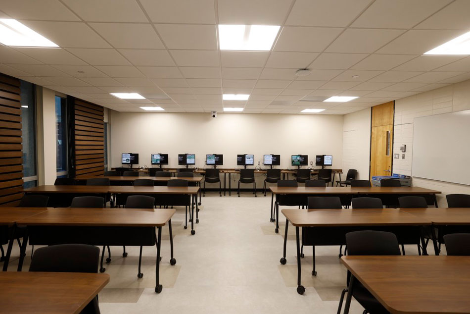 Thanks to the Korpach family’s gift of more than $420,000, Room 142 now features flexible furniture, built-in power at all desks, dimmable LED lighting and a new acoustic ceiling. Expanding the number of seats from 20 to 36 and embedding computer stations within the seminar room now enables greater integration of technology into assignments and class discussions.
