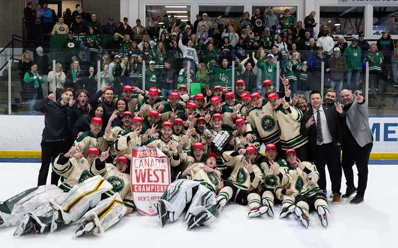 On Saturday night in Calgary, the Huskie men’s hockey team won its second straight Canada West championship with a 4-2 victory over the host Mount Royal University Cougars to sweep the best-of-three conference final.