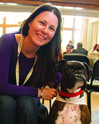 She explained that love, comfort and support are what people feel with animals. Dogs can break the ice and make a client feel comfortable, and frequently, trust develops that much faster with the presence of a dog—the client can trust the dog and by extension the therapist.