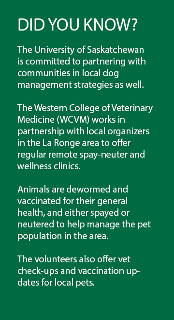 According to Arcand, dogs on reservations in Saskatchewan are primarily free-roaming or strays. If they are not spayed or neutered, this results in an influx of dogs in the community.