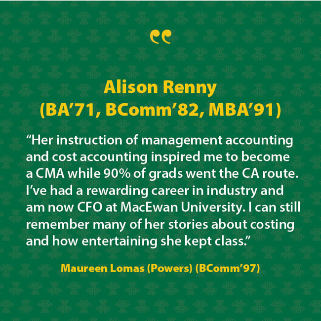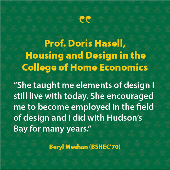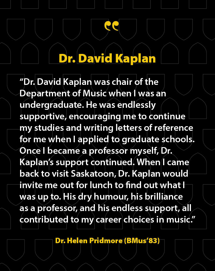 “To me, in 1967, as a young 18-year-old from a small town, she was a role model and a comfort. She always had time to listen and often invited students to talk over a cup of tea in her office. She loved a discussion, no matter the topic, and we knew she taught music education, but for me she was an interested, experienced woman I could trust. She was my supervising teacher during one of my practice teaching stints and she enjoyed the children in my class as much as I did. I remember how she locked eyes with each child she spoke to, and I think she did that with her USask students too. We felt like she actually saw us. As time went on, we became friends. Over the decades we have managed to have tea together a few times a year. We had a 55-year friendship and I think of her often.”