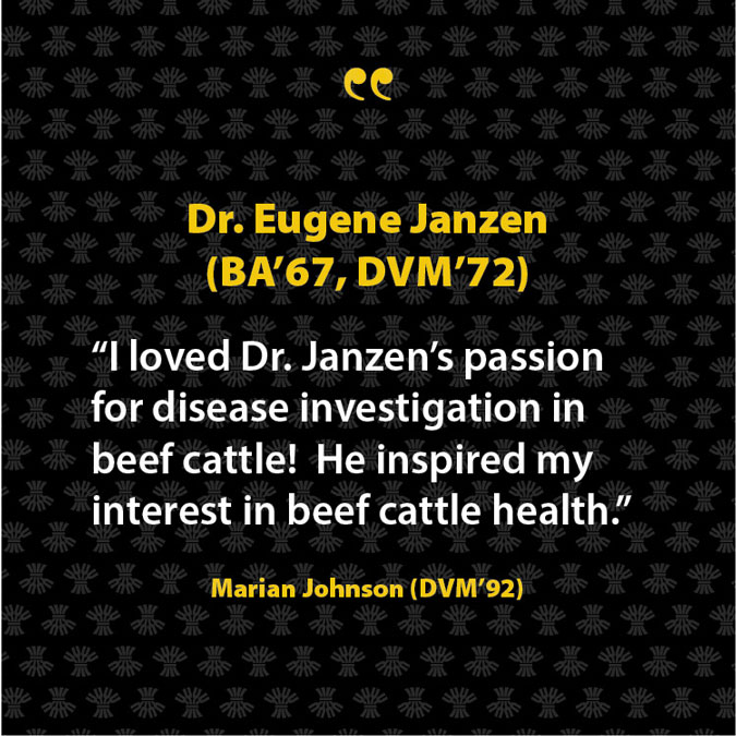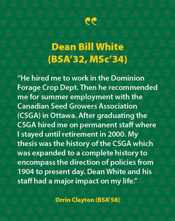 “Probably Professor Stillborn made the biggest impact on my direction in life. His parting words on Grad Day were "we have opened your eyes on where to look for answers". Professors Fender and Fulton gave me tools to stand up and take my place in the community and not shake in my boots while making myself heard. Probably Professor Van Vleit taught me there may be more than one way in life to make a living. The old vet in animal science lab (I've forgotten his name) gave me knowledge to take care of many of my animal health situations. The School of Agriculture with its well-rounded field of instructors made our lives very livable."