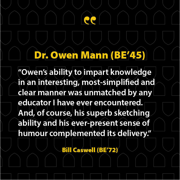 “He was my materials professor in fourth year as well as instructor for our oral and written communications class. It was this latter class where his sense of humor and faith in my ability for public speaking (which I hated) came to light. When it was my turn to receive my paper, Dr. Sargent set the slip in front of me while someone else was talking at the front of the class and I read the subject on which I was to present. It read, “The Sex Life of a Water Buffalo.” Good lord!! I hated public speaking as it was, and now I had to talk about the erotic practices of some aquatic bovine from southeast Asia. Just as I finished reading the words on the paper, it seemed the person currently talking immediately finished and I had no time to gather any thoughts, not that any amount of time would have helped. I don’t think I filled my two minutes, but Dr. Sargent understood and enjoyed the presentation as much as everyone else. My disdain for public speaking still exists to this day, but on the occasions in my career where it was unavoidable, I always found room to inject humour into my presentation. Dr. Sargent taught me that even the heaviest of subjects could be made a little lighter when sprinkled with humour. Sadly, I never saw Dr. Sargent again after graduation and I found out recently that he passed away in February of 2022. A great prof and we could have used a lot more like him leading university classes.”