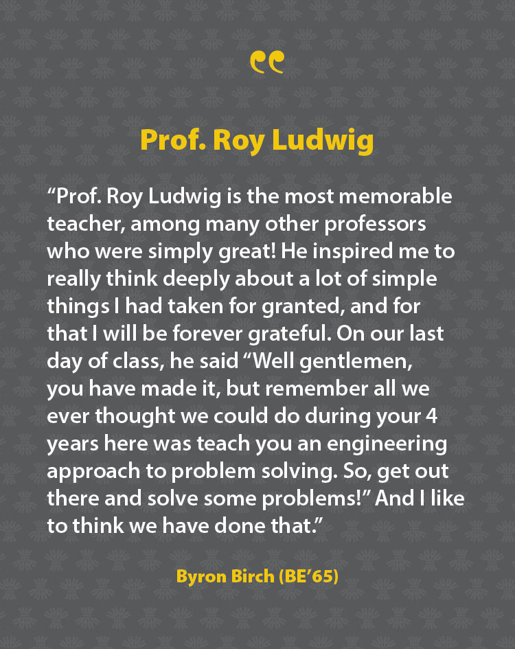 “While I learned successfully in Bob’s thermodynamics class, at the time I did not appreciate the lasting, constructive effect he would have on my subsequent engineering career, and in fact many other aspects of my life to this day. Bob’s most valuable teaching obsession was his highly structured approach to problem analysis. First, define the problem. Then define system boundaries. Then, enumerate principles and definitions that apply. Then, about the time the bell rang to end the class, begin calculations to solve the problem. Being a rather goal-oriented type, I usually left his classes frustrated, because no answer had been produced. However, in all the years following, Bob’s structured approach has assisted me continuously in solving not only engineering, but also many of life’s other problems.”